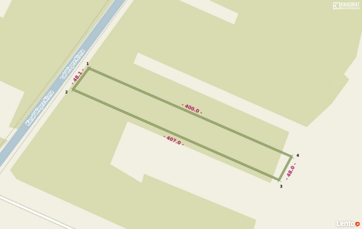 Wymiary działki: szerokość 48 m., długość 405 m.