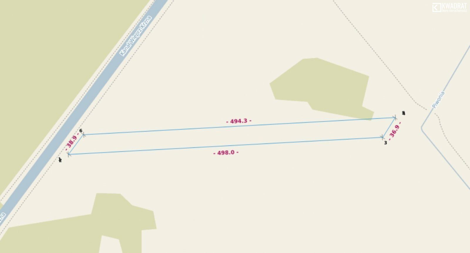 Wymiary działki: szerokość to 30 m., długość 494 m.